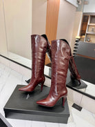 CLASSIC HIGH KNEE BOOTS IN BURGUNDY RED CALFSKIN