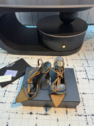 HIGH HEEL SANDALS WITH SHINY RHINESTONES STRAP IN GOLDEN BROWN SILK