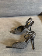 LOLA HIGH SANDALS IN BLACK SMOOTH LAMBSKIN AND DRAPED JERSEY