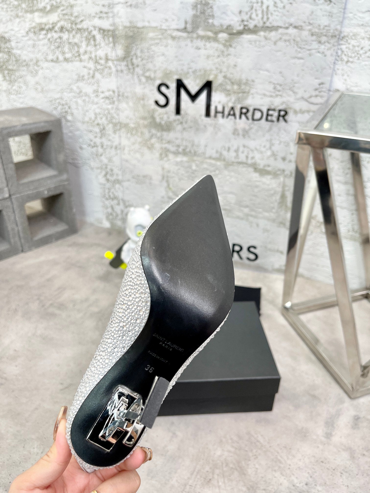 SL OPYUM BASIC HIGH HEEL SILVER CRYSTAL SATIN