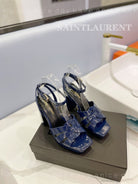 SL TRIBUTE FLATFORM SANDALS GLOSSY NAVY CALFSKIN
