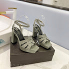 SL TRIBUTE FLATFORM SANDALS GLOSSY SAGE CALFSKIN
