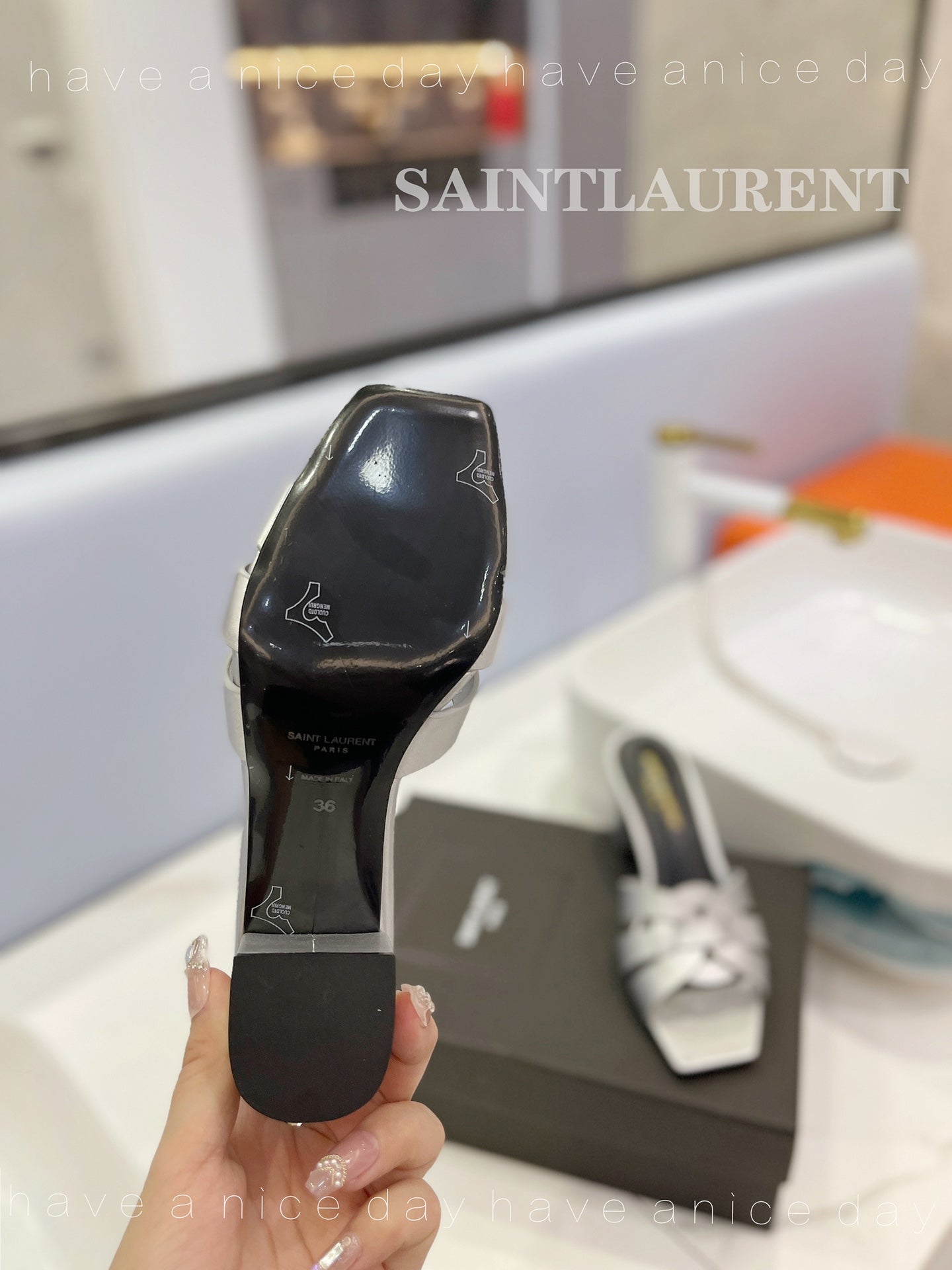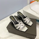 SL TRIBUTE MULES SILVER CALFSKIN