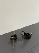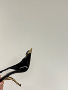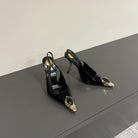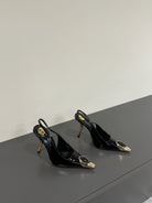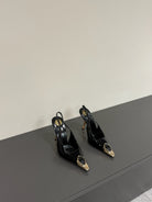 BLACK GEM-STUDDED SLINGBACK PUMPS IN BLACK PATENT CALFSKIN