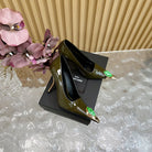 GREEN GEM-STUDDED HIGH PUMPS IN ARMY GREEN PATENT CALFSKIN