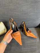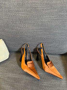 POINTED-TOE SLINGBACK PUMPS IN TANGELO ORANGE SILK