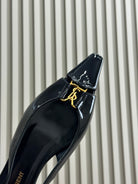 SL BABYLONE SLINGBACK FLAT BLACK POLISHED CALFSKIN