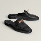 • Material: Mule in goatskin with iconic rose gold-plated Kelly buckle.
