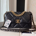 19 FLAP BAG 30 BLACK GOATSKIN GOLD HARDWARE