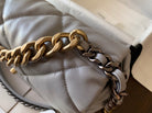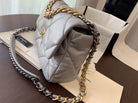 19 FLAP BAG 30 GREY GOATSKIN GOLD HARDWARE