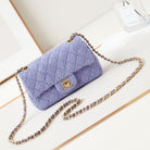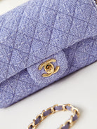 24p small flap bag 20cm purple blue tweed gold hardware