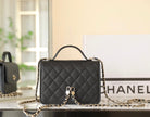 25C Flap Bag With Top Handle 18cm Black Grained Calfskin