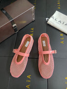 ALAIA BALLET FLATS IN LIGHT PINK MESH FISHNET