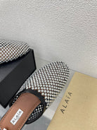 ALAIA FLAT MULES IN STRASS BLACK LAMBSKIN WITH RHINSTONES
