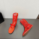 ALAIA SHORT BOOTS IN ORANGE RED MESH FISHNET