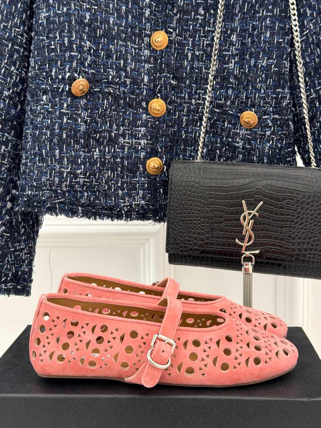 Alaia Women's Ballet Flat Pink Suede 293227