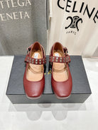 Alaila Biker Ballet Flats In Brown Red Cowhide 911440