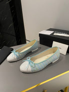 ballet flat cloud blue embroidered fabric white calfskin