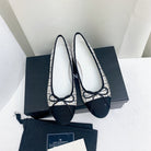 ballet flat white black tweed grosgrain