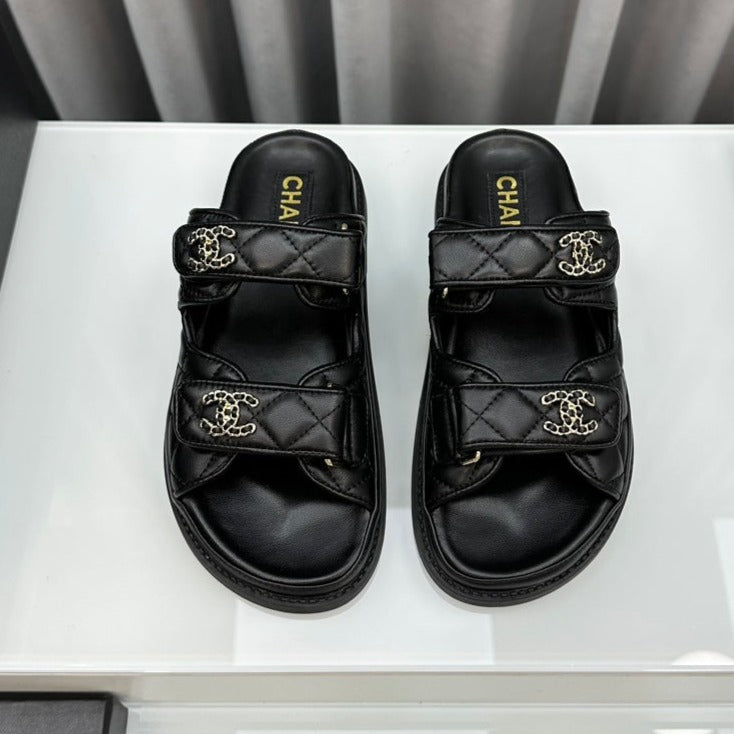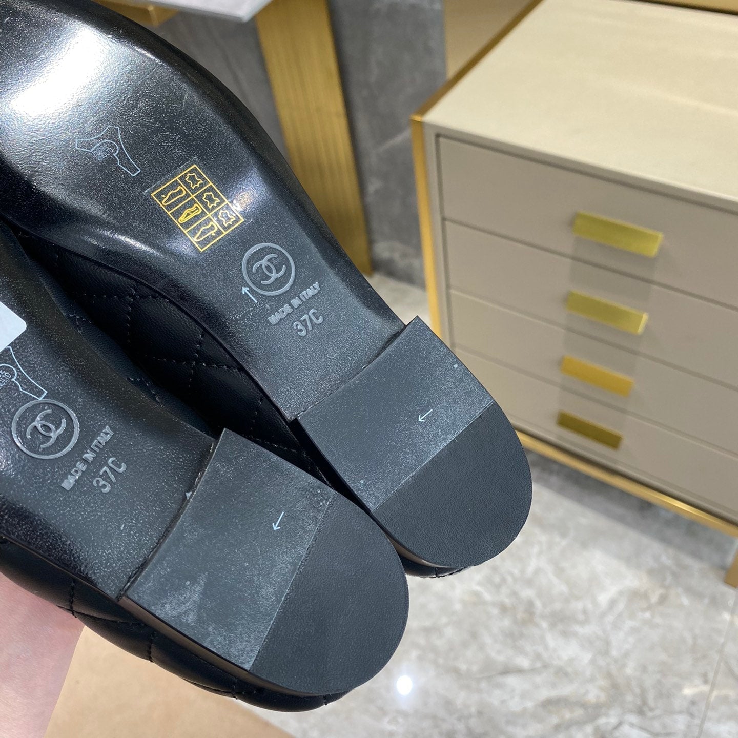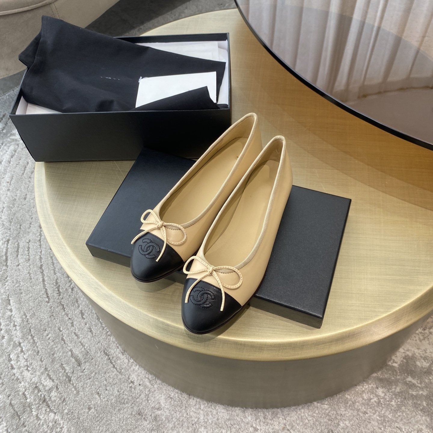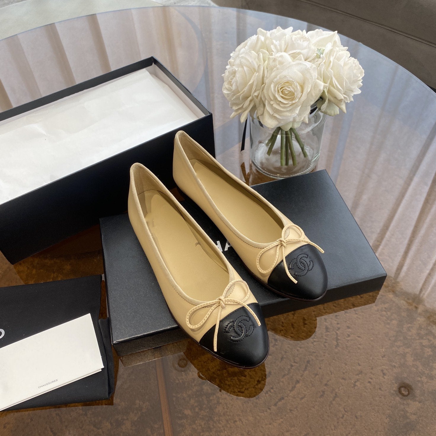 CC BALLET FLATS IN BLACK LAMBSKIN WITH GOLD HARDWARE