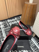 CC Ballet Flats Red Silk Flowers And Lambskin