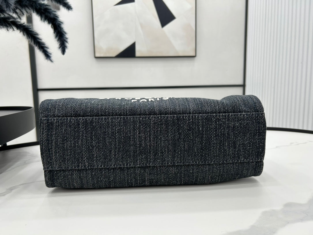 CC Deauville Tweed Bag 33x24x14.5cm Black Leather Gold Hardware 27