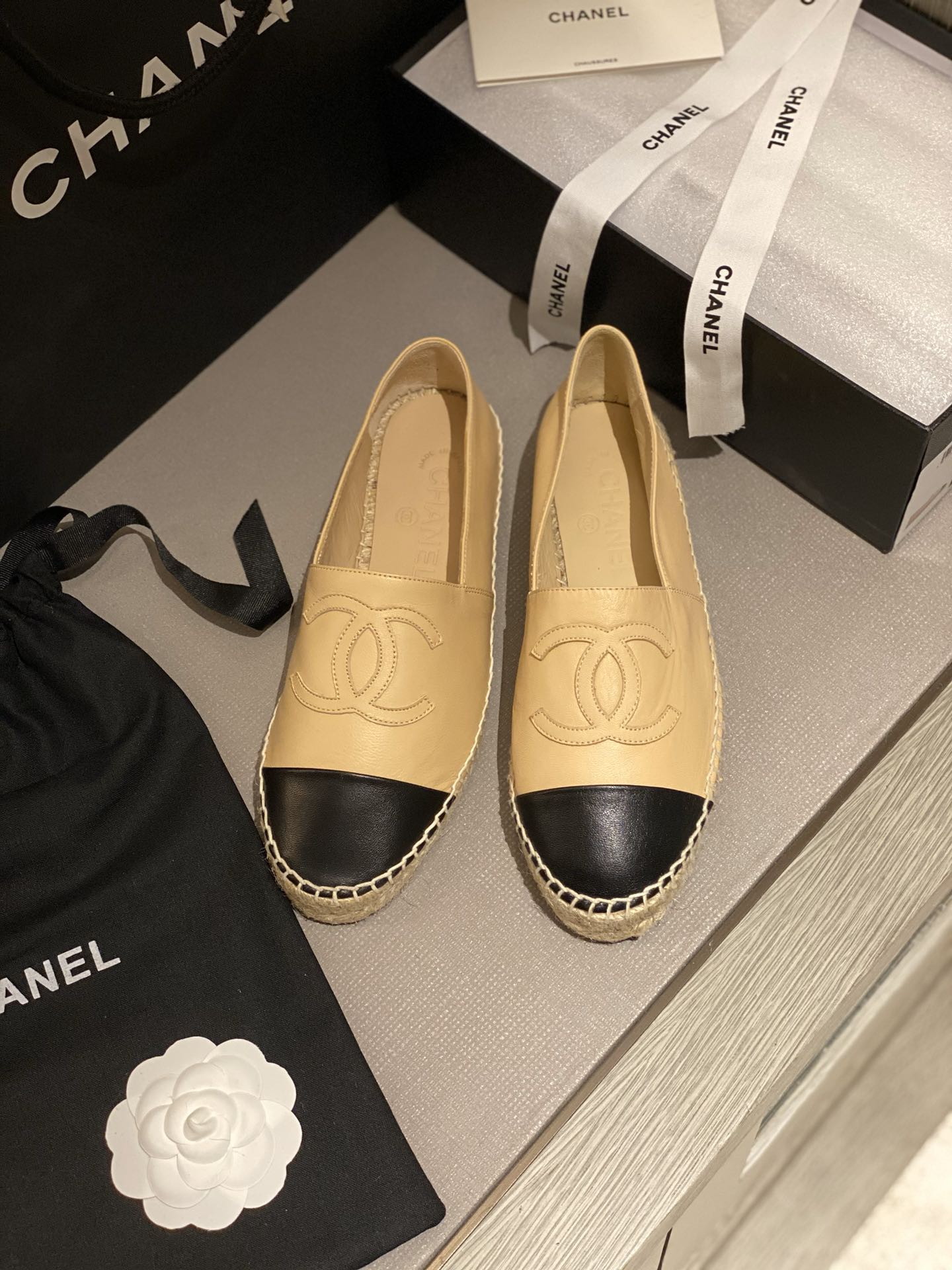 cc espadrilles beige black calfskin