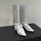 CC High Boots White Bow Tie Cowhide