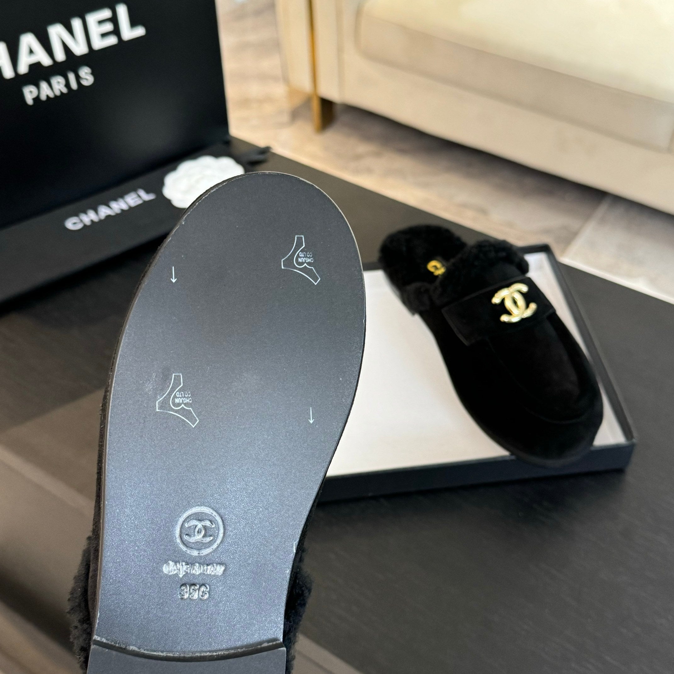 CC Mule Black Suede Lamb Wool