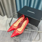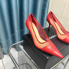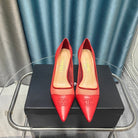 CC Pumps 50 Red Mesh Leather Pointed Toe