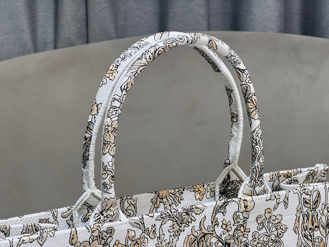 CD Book Tote 41.5 Beige White Canvas