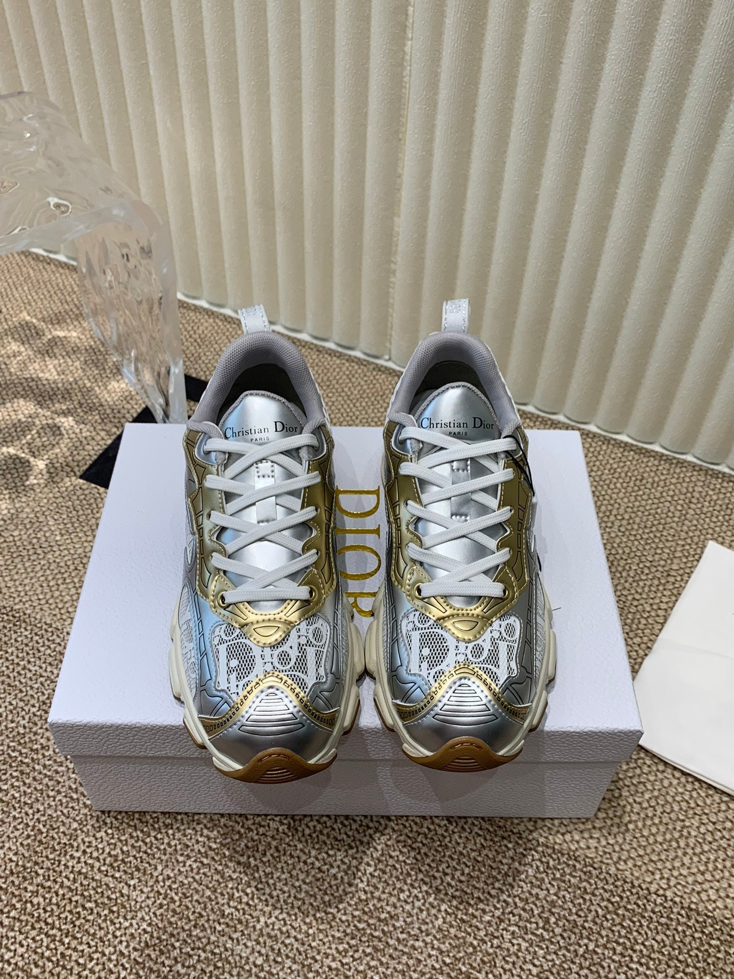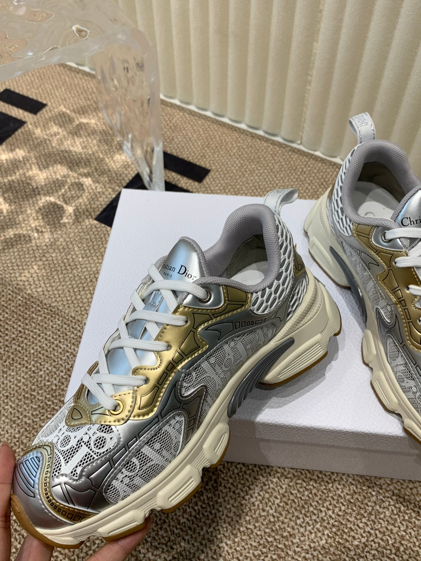 CD Vibe Sneaker In White Mix Dark Grey Gold Polyester Mesh Fabric And Cowhide 113418