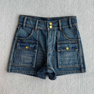 Celine 25 Arc de Triomphe Metal Buckle Denim Shorts Blue Cotton 275804