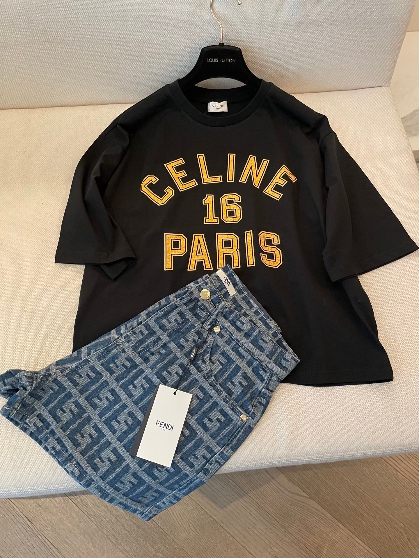 Celine 25 "CELINE 16 PARIS" T-shirt Black mix Yellow Cotton