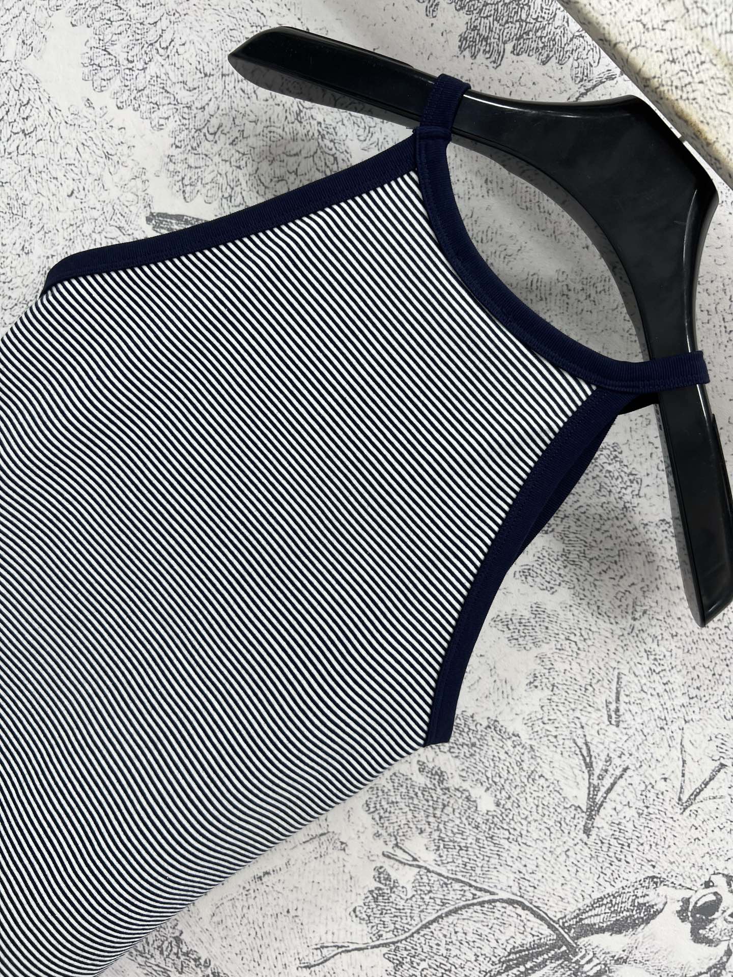 Celine 25 Embroidered Logo Striped Small Vest Navy Blue mix White Cotton