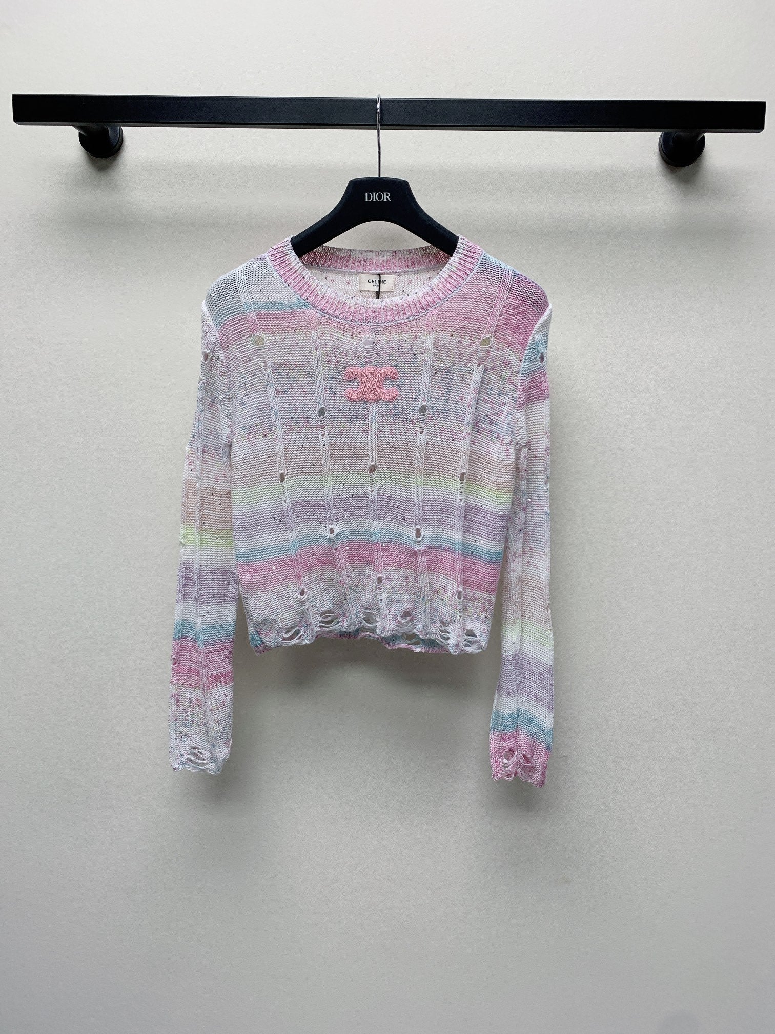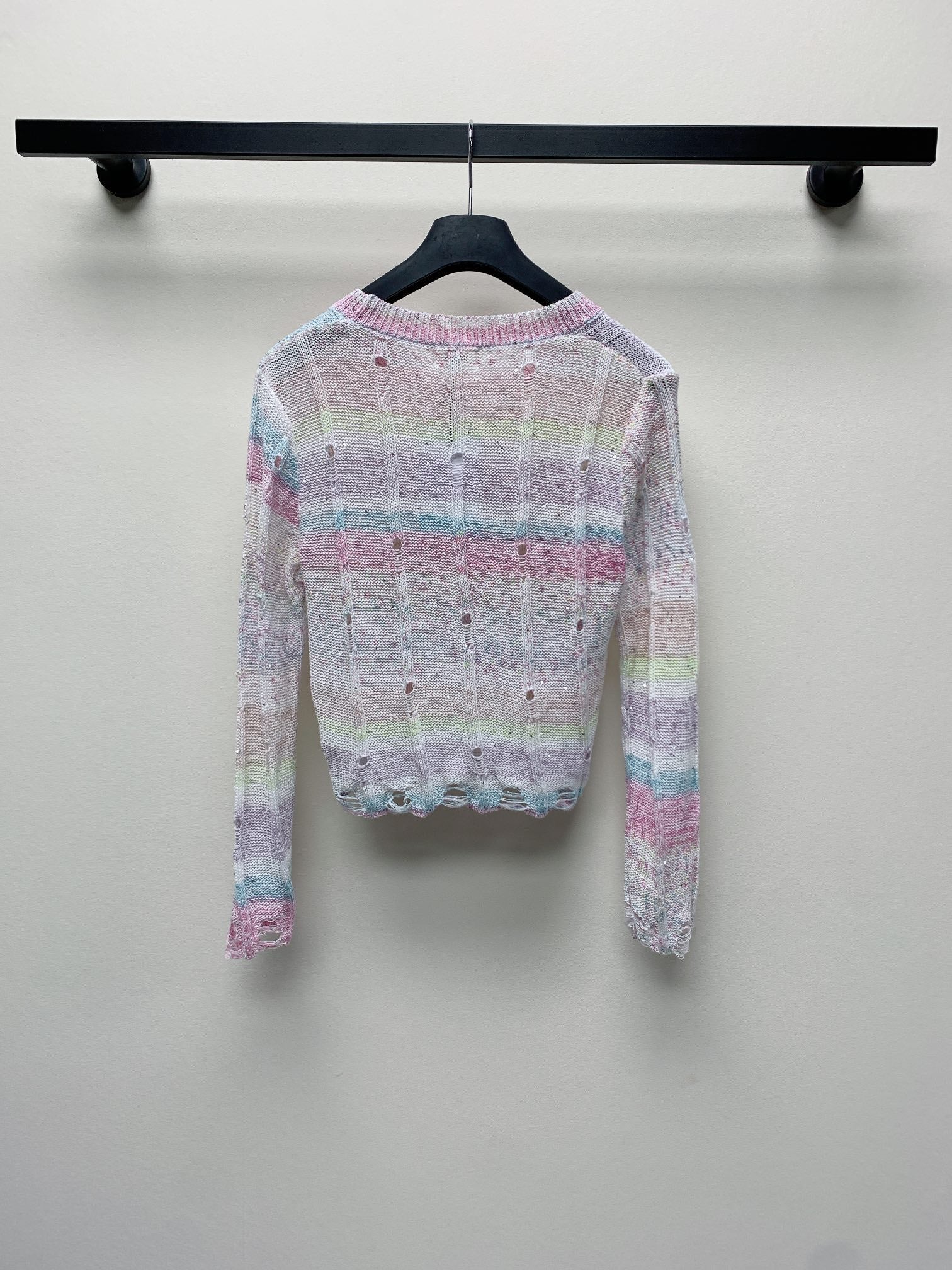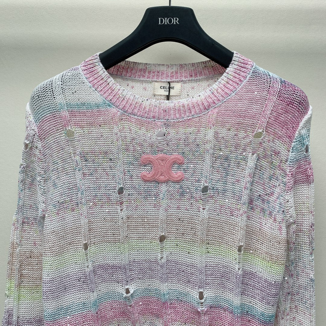 Celine 25 Pastel Striped Sweater Pink Mix Colors Wool Polyester 277565