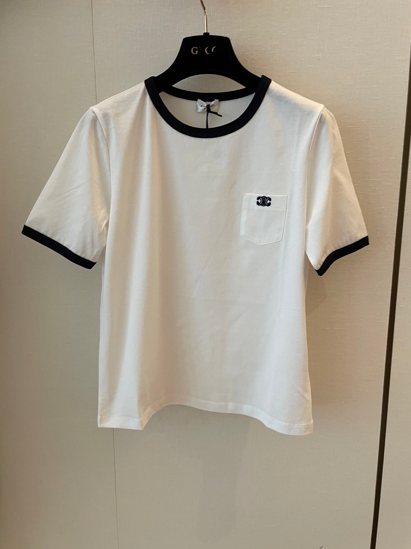 Celine Small Logo t-shirt White mix Black Cotton