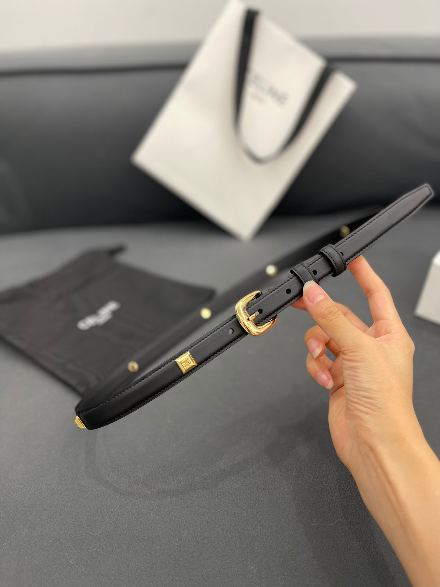 CL SMALL 18 MM TRIOMPHE BELT IN TAURILLON BLACK LEATHER GOLD HARDWARE
