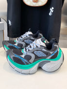 DAD SHOES IN GRAY MIX MINT GREEN AND BLUE MESH AND CALFSKIN