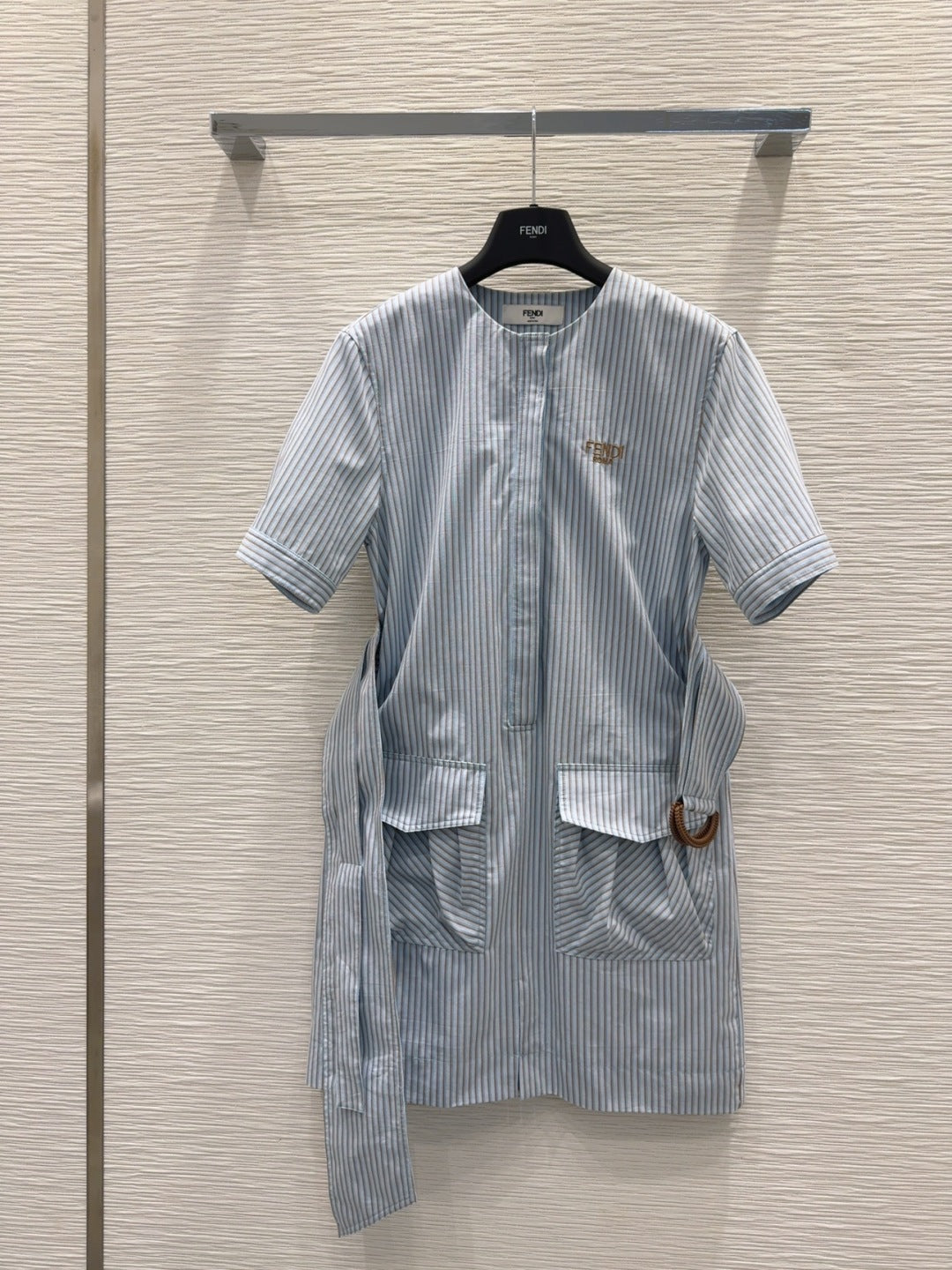 Fendi 25 Striped Dress Blue Cotton