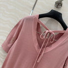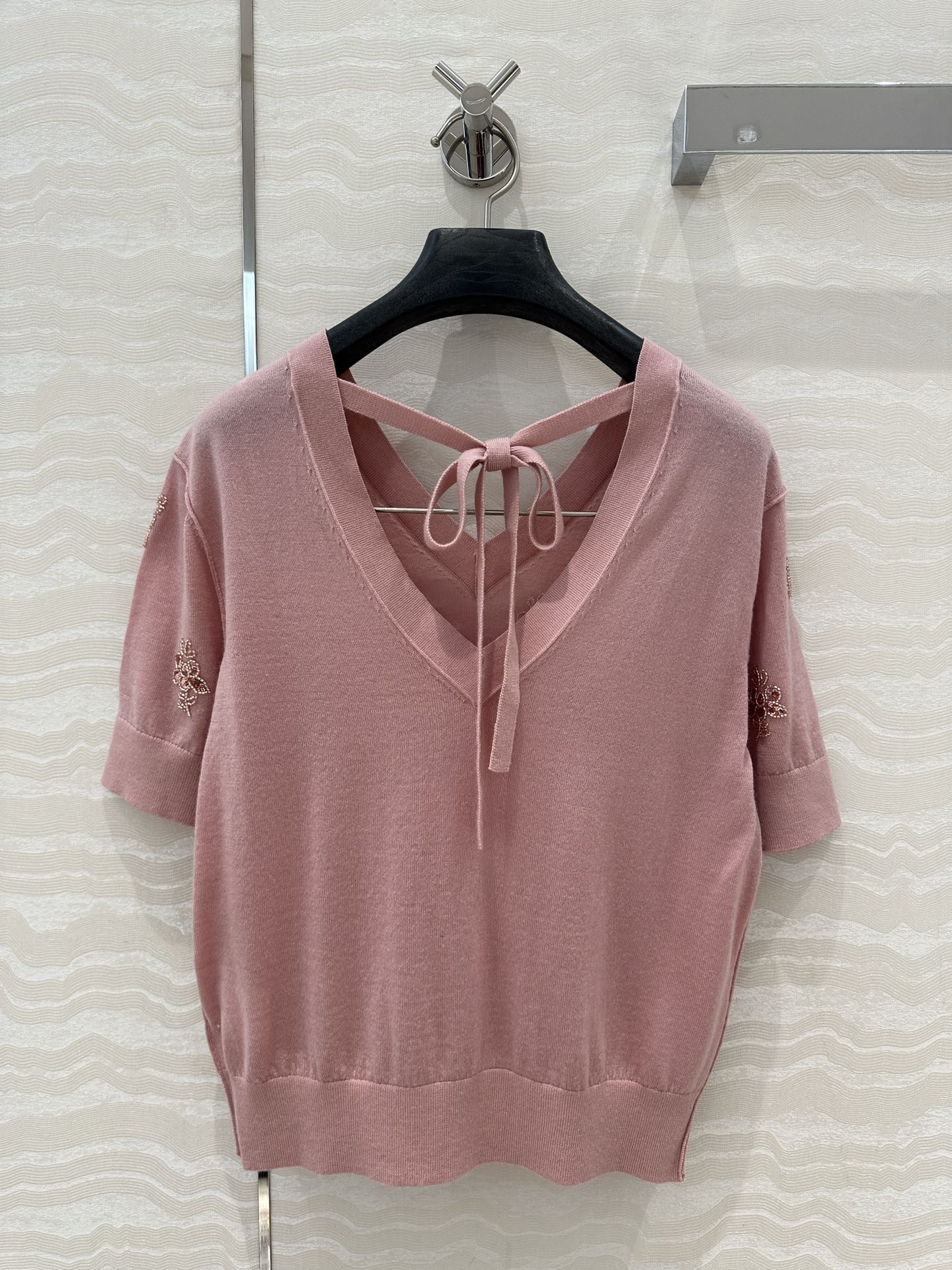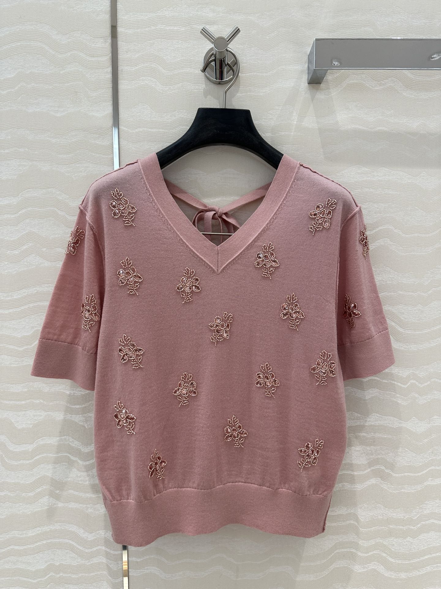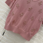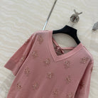 Fendi Beaded Flower V-neck Knitted Small Top Pink Wool