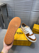 FENDI MATCH LOW TOPS IN RUSSET BROWN MIX WHITE CALFSKIN AND MESH