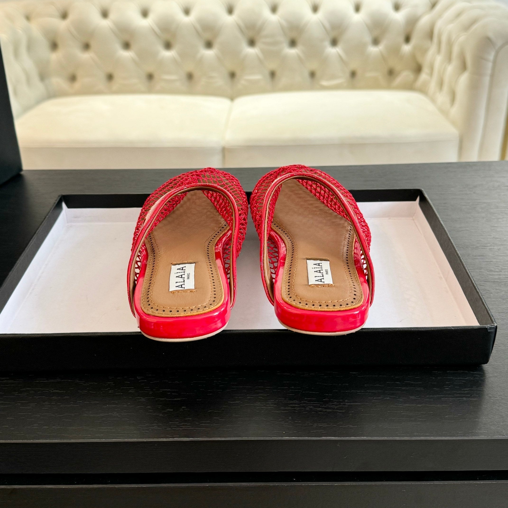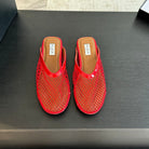 flat mule fishnet red lambskin