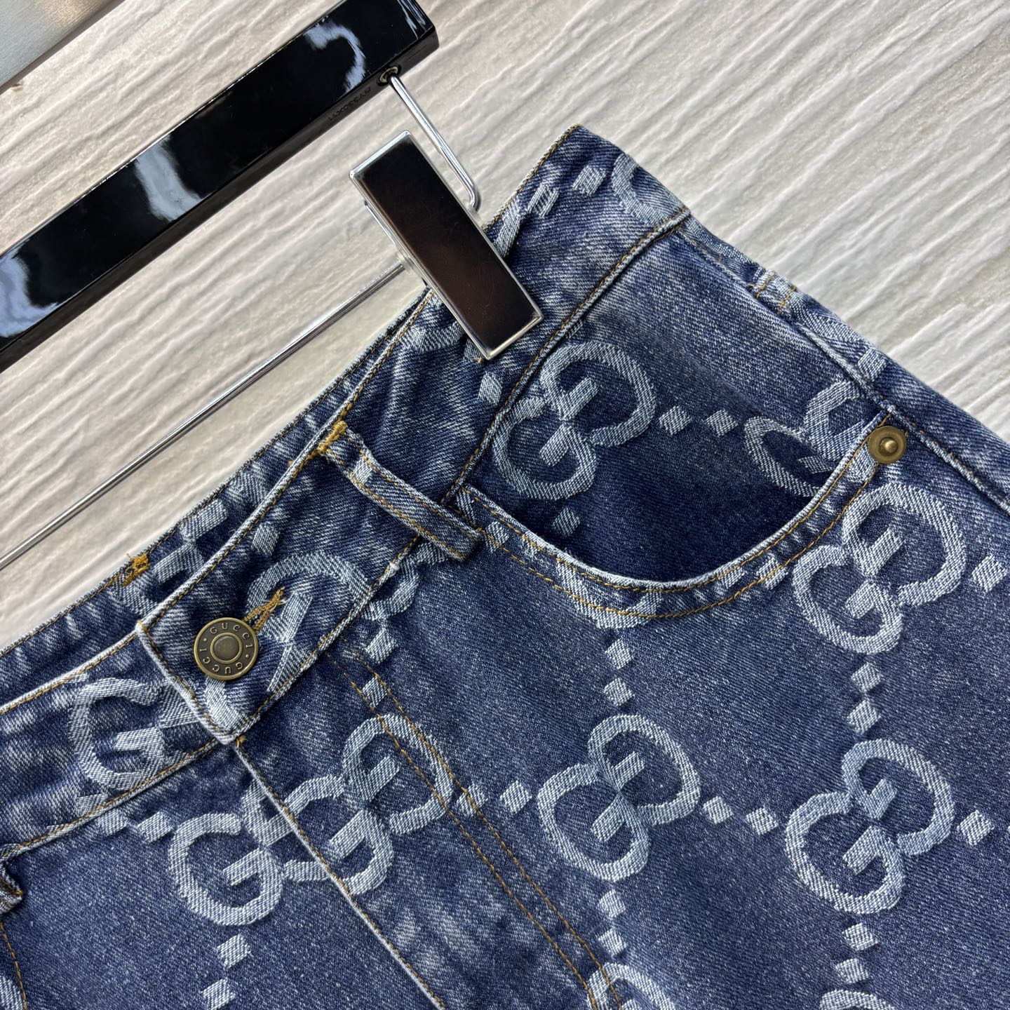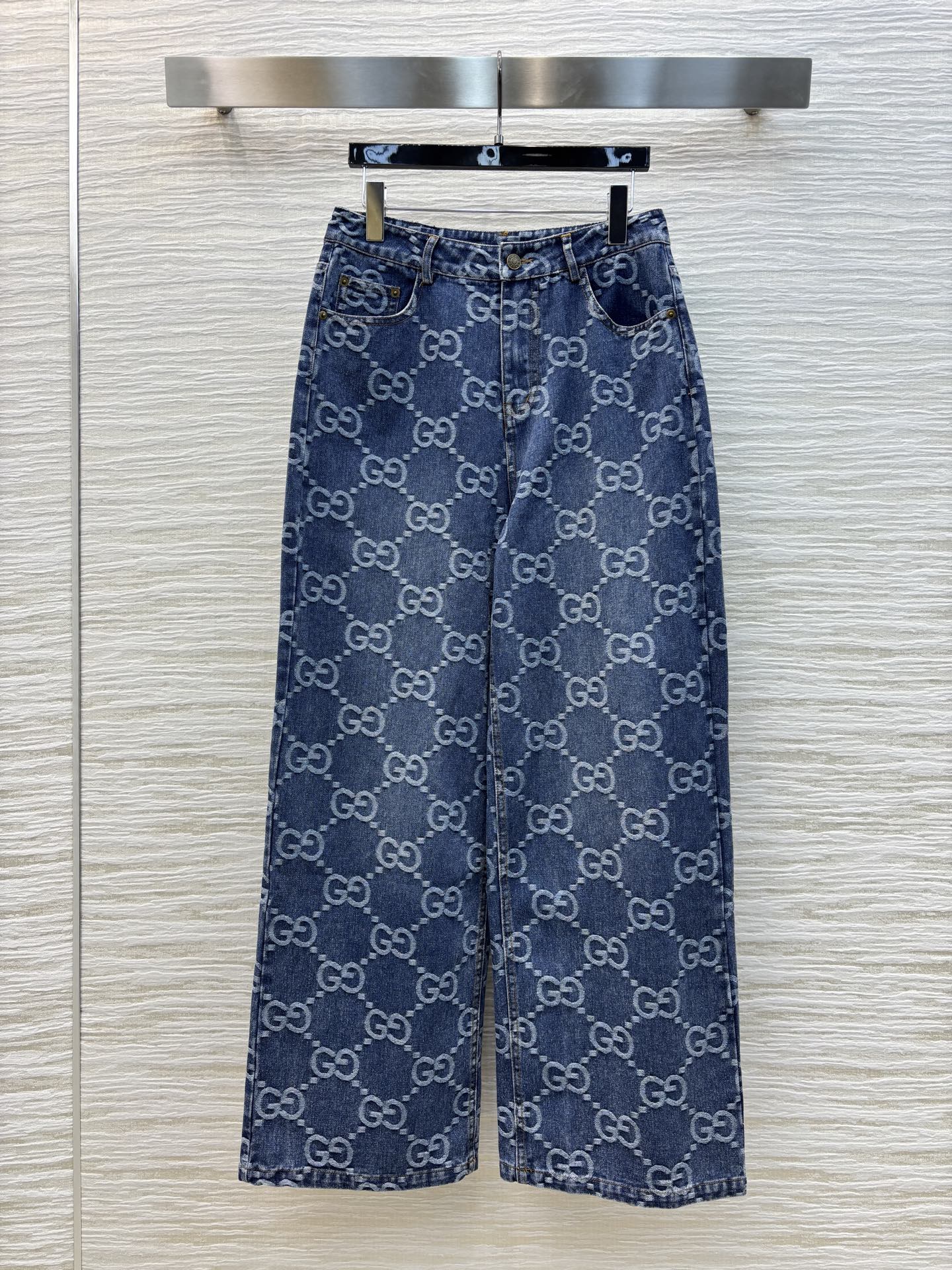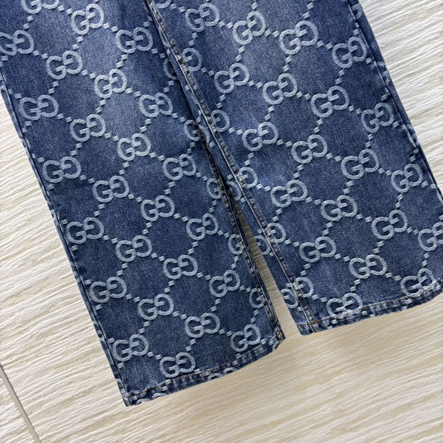 Gucci 2025 Logo Jacquard Straight Jeans Blue Cotton