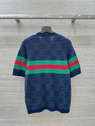 Gucci 25 Mesh Short-sleeved Top Blue Tencel