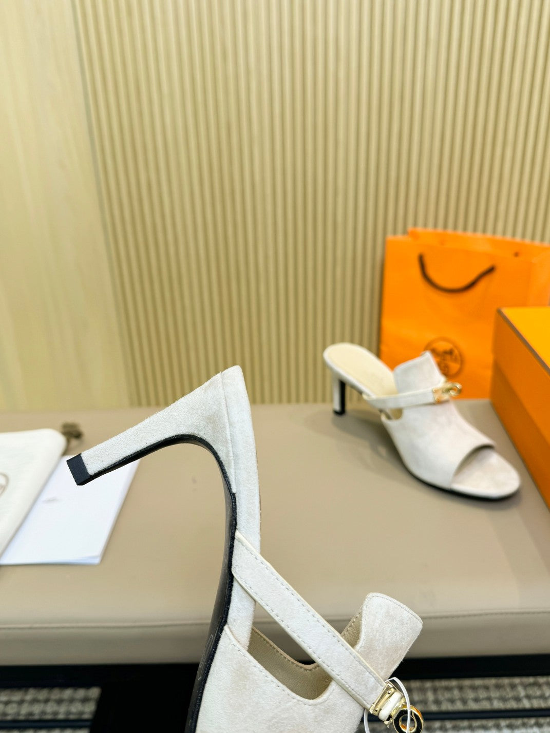 HEDEN MULE 80 WHITE SUEDE
