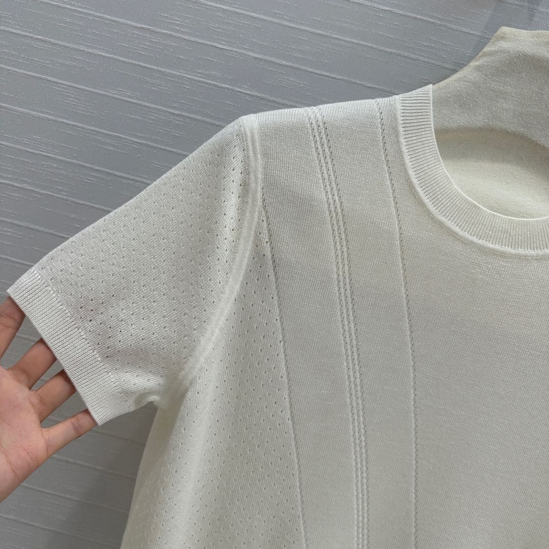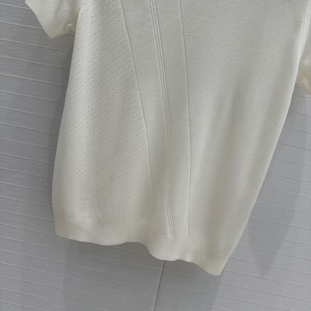Hm 25 Hollow Knit Short-Sleeve Top White Tencel Cotton