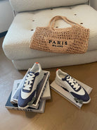 HM Bouncing 35 Sneakers White Canvas Blue Suede Goatskin Orange H Seafoam