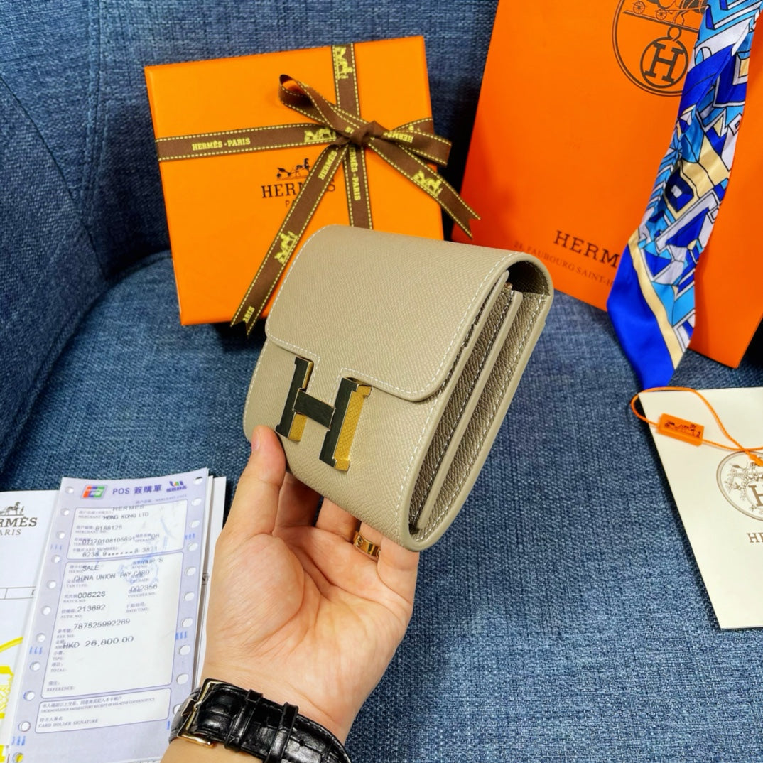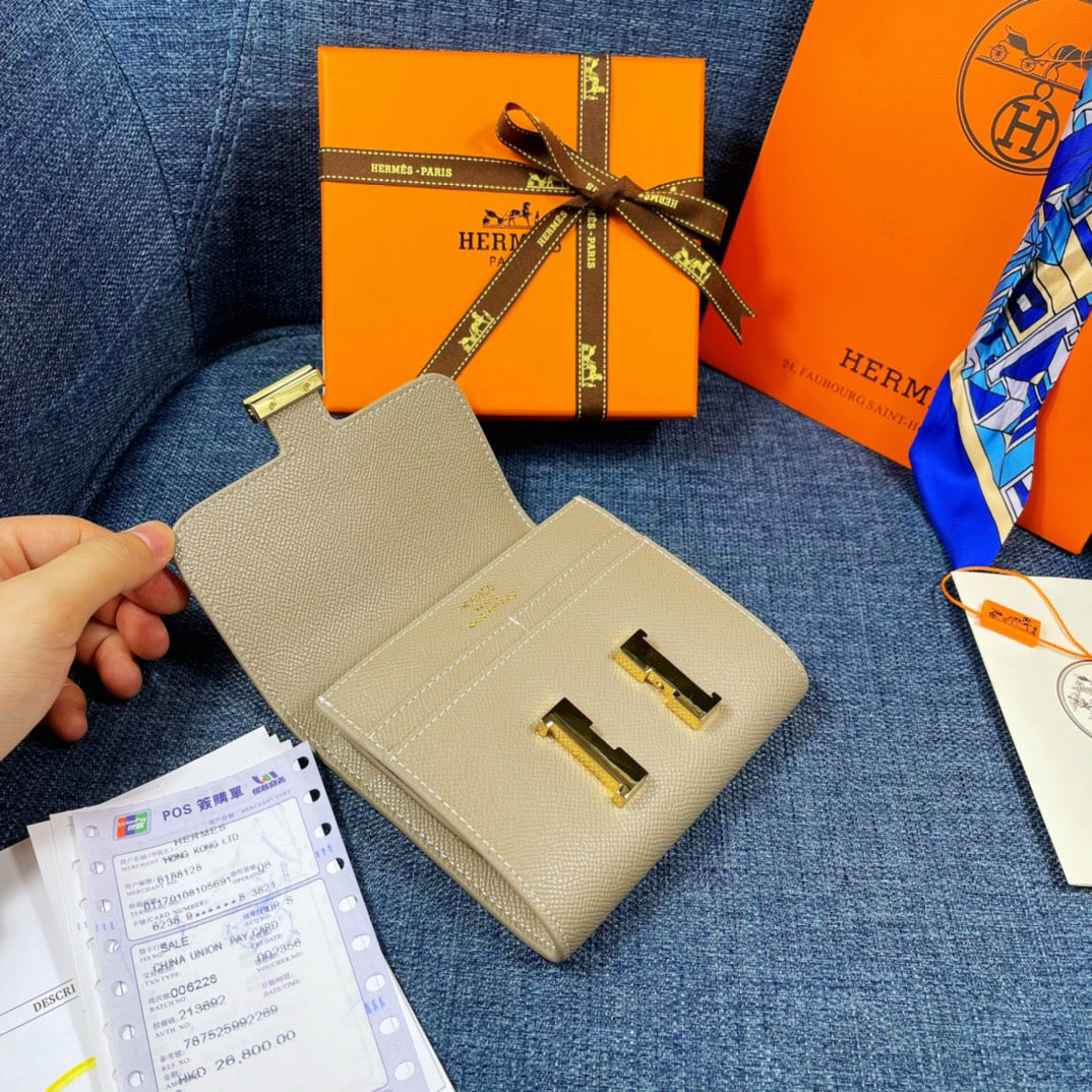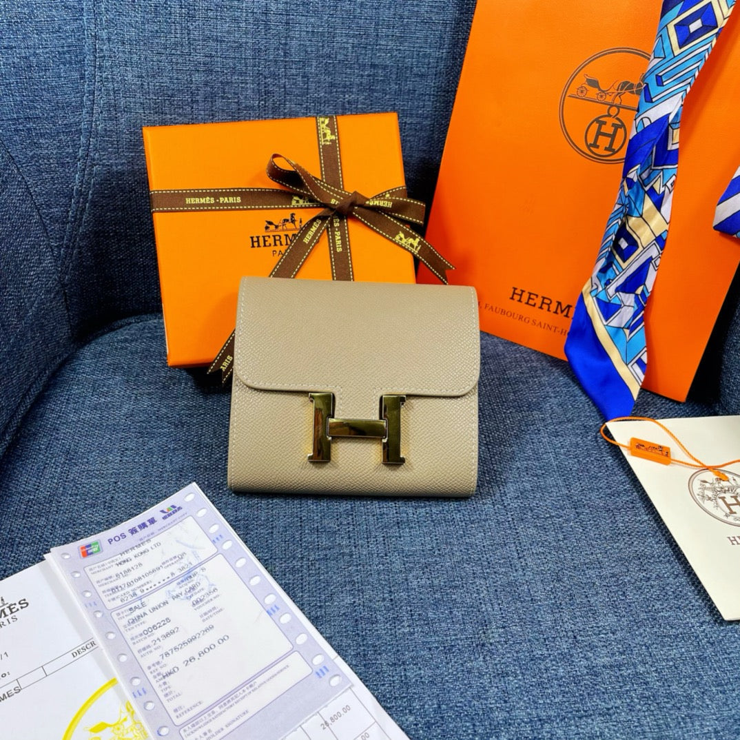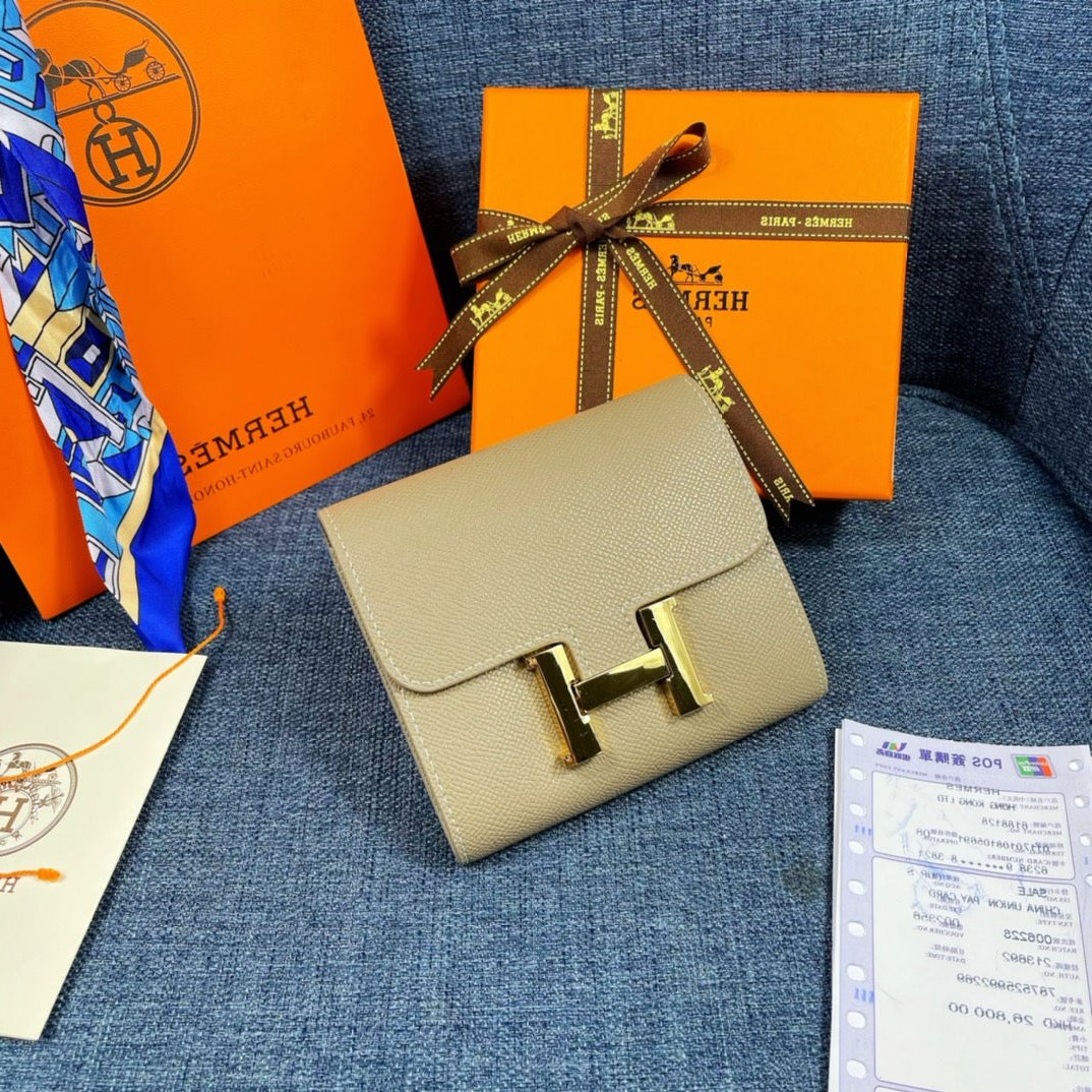 HM CONSTANCE 12 KHAKI CALFSKIN GOLD HARDWARE