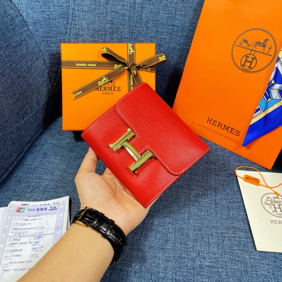 HM CONSTANCE 12 RED CALFSKIN GOLD HARDWARE